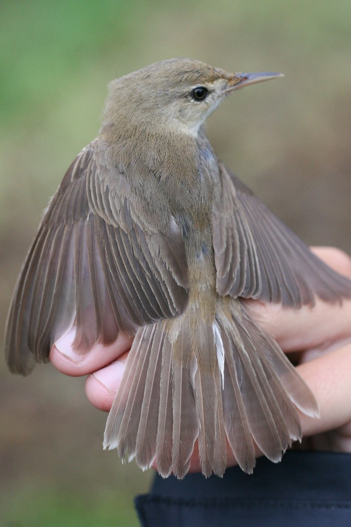 The bird has a long p2 in comparison to a Blyth’s Reed Warbler. P2 should be slightly shorter in fuscus compared to scirpaceus, but I’m hesitant to make any assertions regarding this bird.